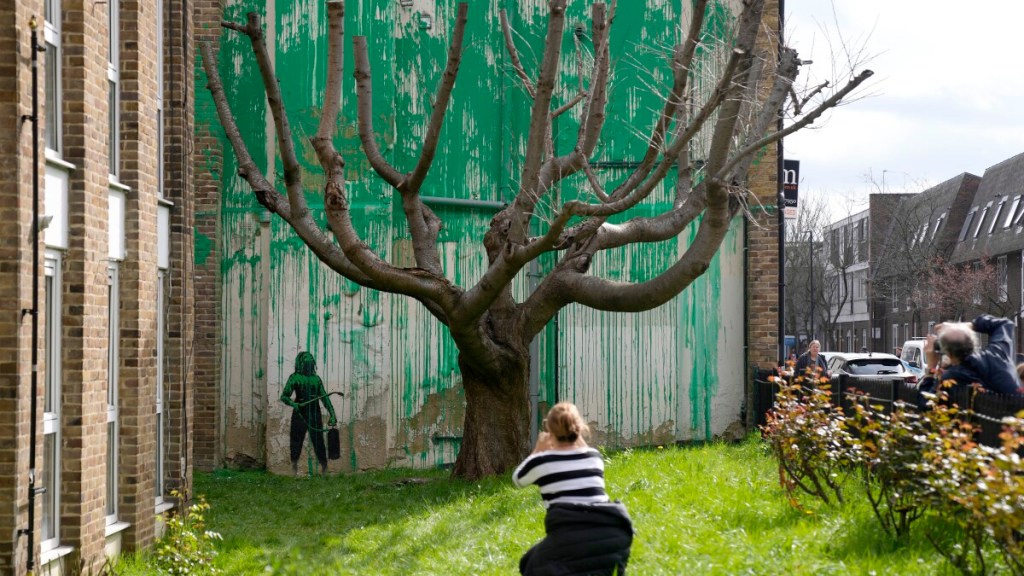 Μια νέα δημιουργία στο βόρειο Λονδίνο και συγκεκριμένα στο Finsbury Park, έφτιαξε ο Banksy και την πιστοποίησε την Δευτέρα στο Instagram στο προσωπικό του προφίλ. Πράσινο χρώμα ψεκασμένο σε έναν τοίχο πίσω από ένα κομμένο δέντρο για να μοιάζει με φύλλωμα, το οποίο «ενσωματώνεται» στο έργο και το ολοκληρώνει. Στο επίκεντρο του θέματος βρίσκεται ένα κορίτσι.