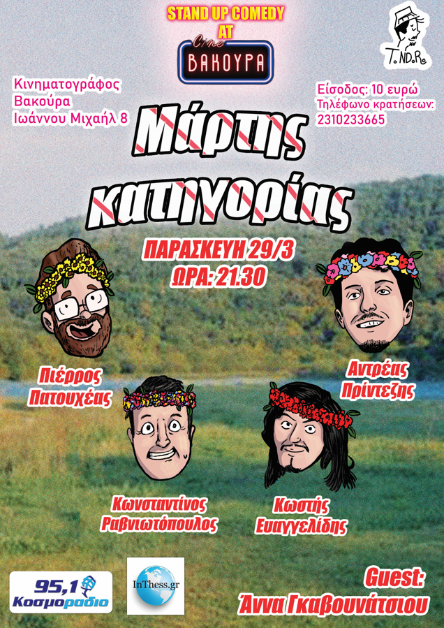 Οι κωμικοί Πιέρρος Πατουχέας, Κωνσταντίνος Ραβνιωτόπουλος, Κωστής Ευαγγελίδης και Αντρέας Πρίντεζης αφήνουν για λίγο στην άκρη αυτές τις δραστηριότητες και στέκονται στη σκηνή του Cine Βακούρα στις 29 Μαρτίου για έναν τελετουργικό εξαγνισμό μέσω του χιούμορ!