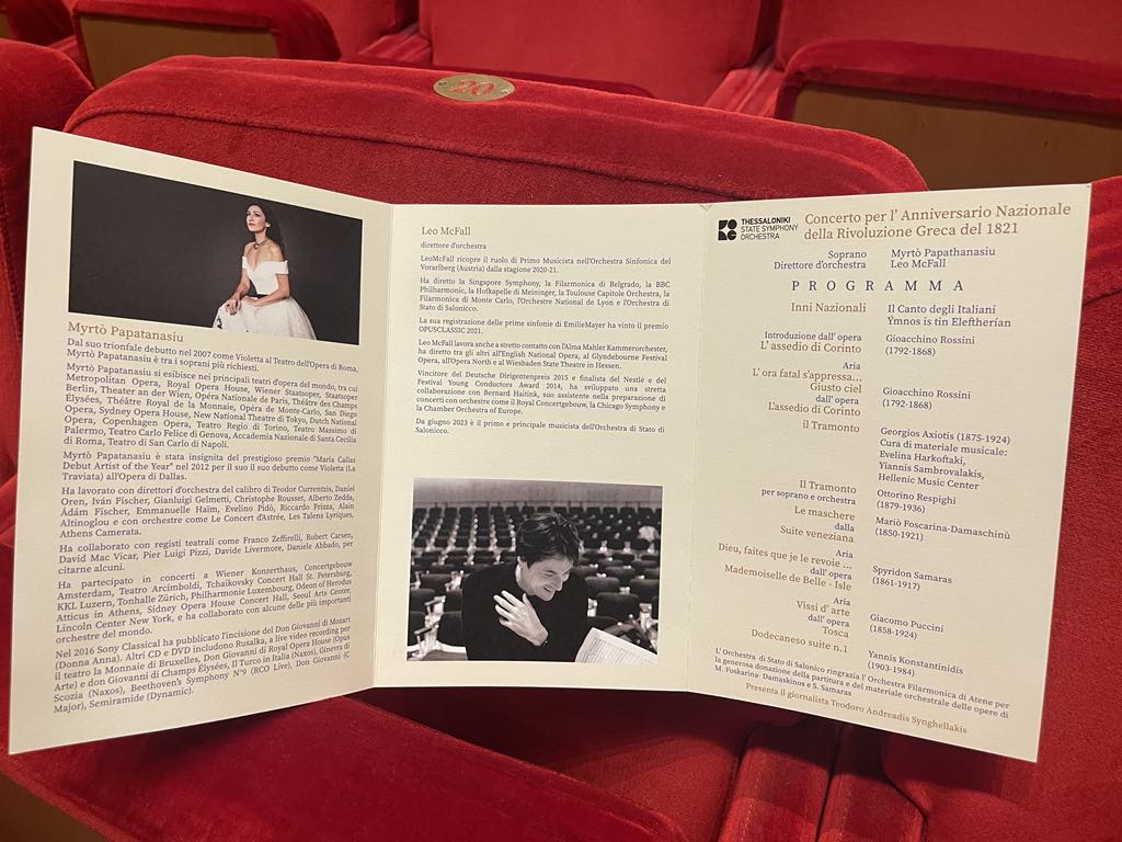 Η Κρατική Ορχήστρα Θεσσαλονίκης εμφανίστηκε με επιτυχία προχθές στη Sala Sinopoli της Ρώμης, ως προσκεκλημένη της Ελληνικής Πρεσβείας στην πρωτεύουσα της Ιταλίας, σε μία συναυλία-αφιέρωμα στην 203η επέτειο της Ελληνικής Επανάστασης του 1821.