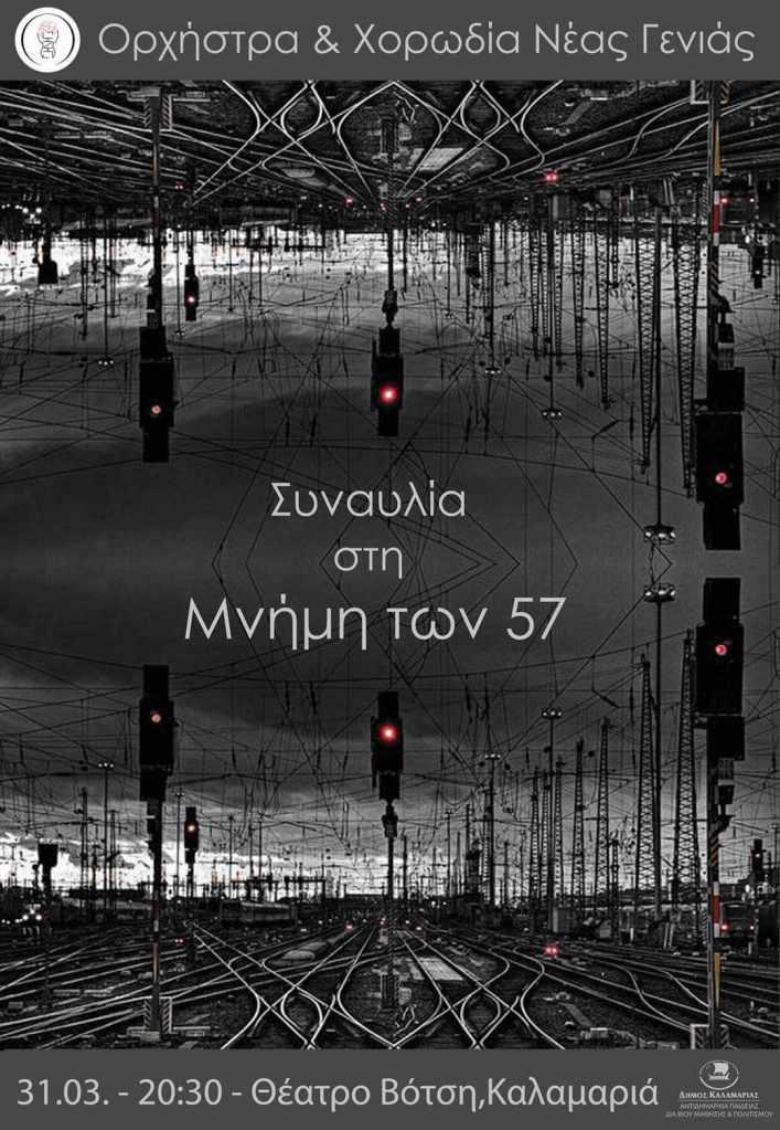 Η Αντιδημαρχία Παιδείας, Δια βίου Μάθησης και Πολιτισμού του Δήμου Καλαμαριάς σε συνεργασία με την Ορχήστρα και τη Χορωδία Νέας Γενιάς, διοργανώνουν μια συναυλία στη μνήμη των θυμάτων των Τεμπών.