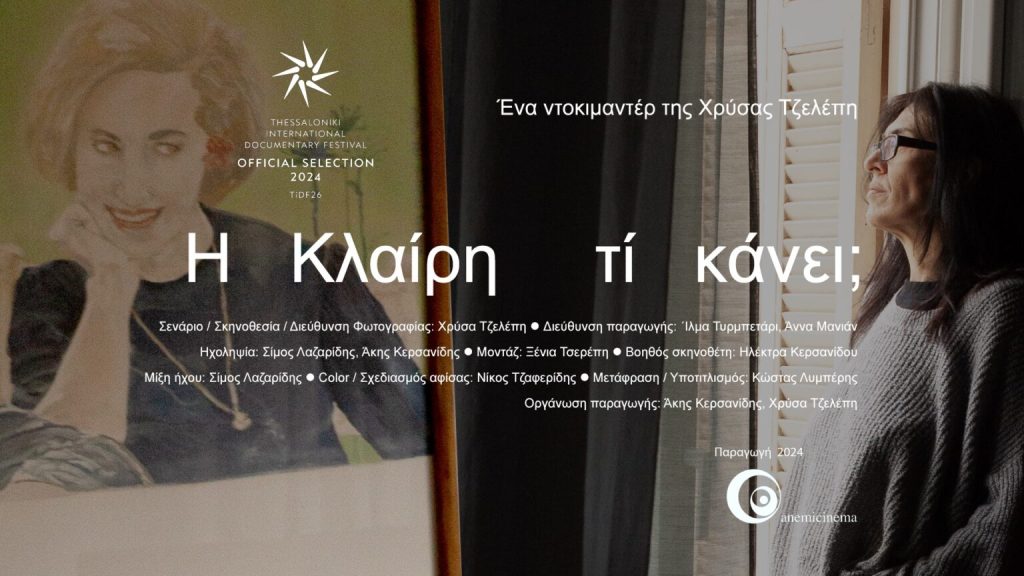 Η Κινηματογραφική Λέσχη Solaris συνεργάζεται με το Κινηματοθέατρο Αθήναιον, στη Θεσσαλονίκη, Βασιλίσσης Όλγας 35. Ξεκινώντας τη νέα περίοδο προβάλλουμε την ταινία-ντοκιμαντέρ «Η Κλαίρη τι κάνει;», της Χρύσας Τζελέπη. Η προβολή θα γίνει την Πέμπτη, 18 Απριλίου 2024, στις 21.00 παρουσία των συντελεστών της.