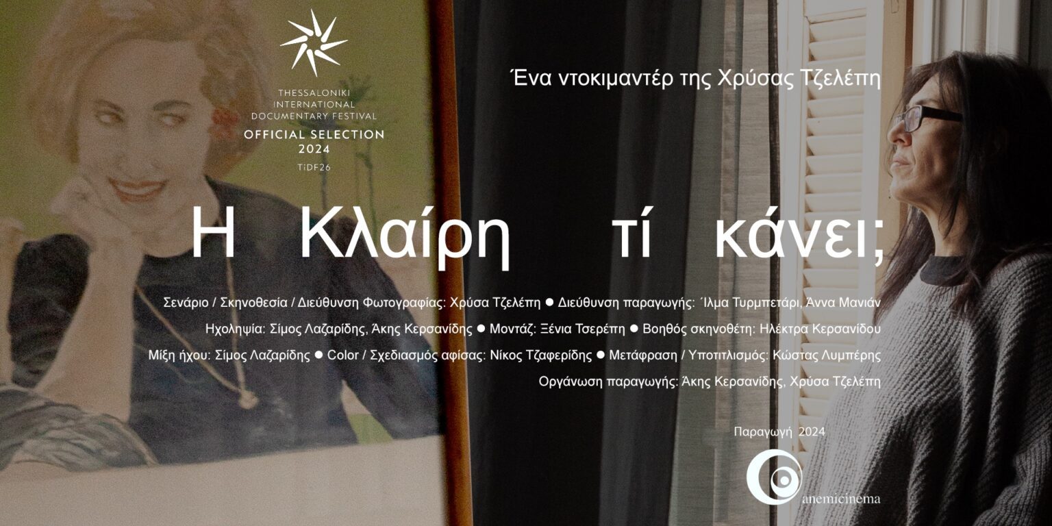 Η Κινηματογραφική Λέσχη Solaris συνεργάζεται με το Κινηματοθέατρο Αθήναιον, στη Θεσσαλονίκη, Βασιλίσσης Όλγας 35. Ξεκινώντας τη νέα περίοδο προβάλλουμε την ταινία-ντοκιμαντέρ «Η Κλαίρη τι κάνει;», της Χρύσας Τζελέπη. Η προβολή θα γίνει την Πέμπτη, 18 Απριλίου 2024, στις 21.00 παρουσία των συντελεστών της.