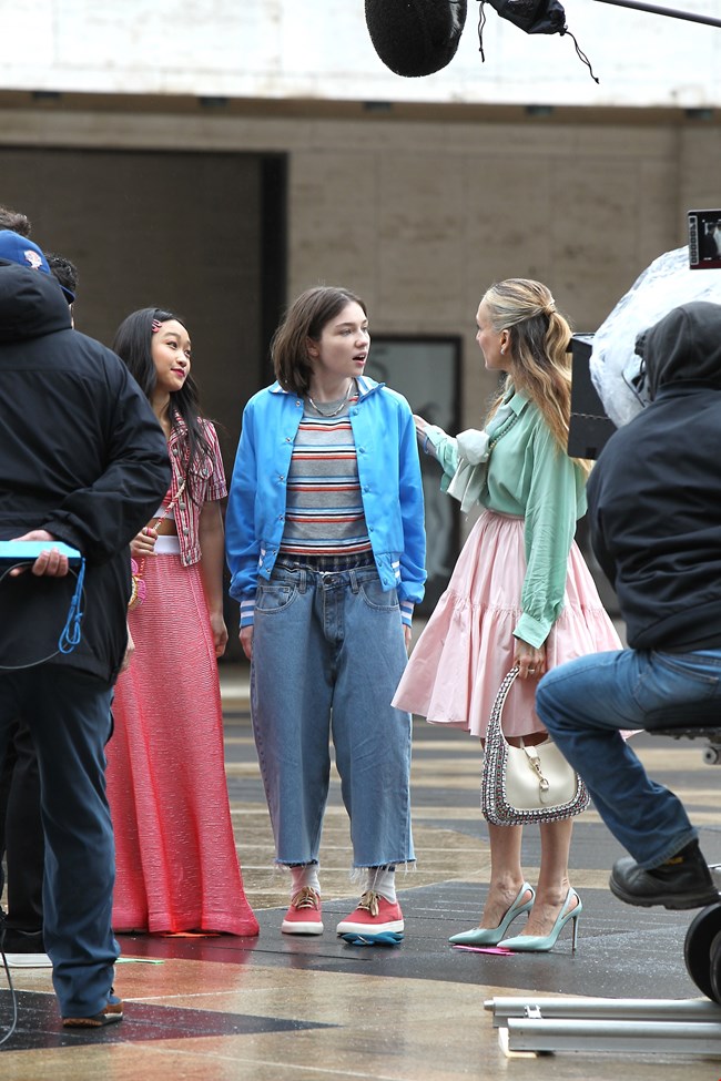 Η Sarah Jessica Parker φόρεσε ένα μεταξένιο πουκάμισο και γόβες στο χρώμα της μέντας τα οποία συνδύασε με μία ροζ φούστα. Ολοκλήρωσε την εμφάνισή της με ένα ιδιαίτερο αξεσουάρ που δεν είναι άλλο από την τσάντα Jackie του οίκου Gucci. Η 59χρονη ηθοποιός ανακοίνωσε την έναρξη των γυρισμάτων της σειράς ανεβάζοντας το συγκεκριμένο look στον λογαριασμό της στο Instagram. Στη λεζάντα σημείωσε πως ήταν η πρώτη μέρα.