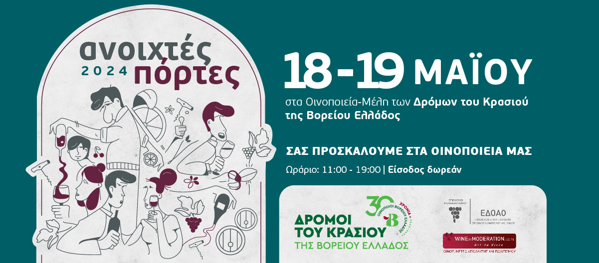 Ξεναγήσεις, οινογευσίες, εκδηλώσεις και διάφορες προτάσεις προγραμματίζονται από τα οινοποιεία προκειμένου οι επισκέπτες τους να γνωρίσουν από κοντά τον βορειοελλαδίτικο αμπελώνα, τη διαδικασία δημιουργίας των θαυμάσιων κρασιών των Οινοποιών μας, κυρίως όμως τους ίδιους τους δημιουργούς τους. Πιο συγκεκριμένα, το Σαββατοκύριακο 18 & 19 Μαΐου, στις οκτώ οινικές διαδρομές των Δρόμων του Κρασιού της Βορείου Ελλάδος», θα έχουν ΑΝΟΙΧΤΕΣ ΠΟΡΤΕΣ τα οινοποιεία: