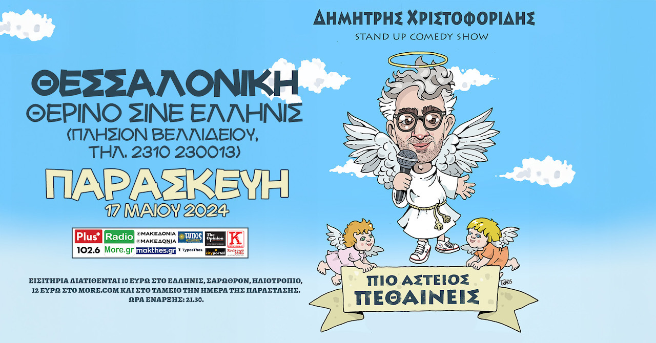 Ο αγαπημένος κωμικός Δημήτρης Χριστοφορίδης επιστρέφει στη Θεσσαλονίκη στο Σινέ Ελληνίς για μία παράσταση Stand Up, με θεματολογία που εκτείνεται από την αριστερά και την γιαγιά, μέχρι το Gay Pride και την αναζήτηση της ευτυχίας και φυσικά το γέλιο μέχρι θανάτου!