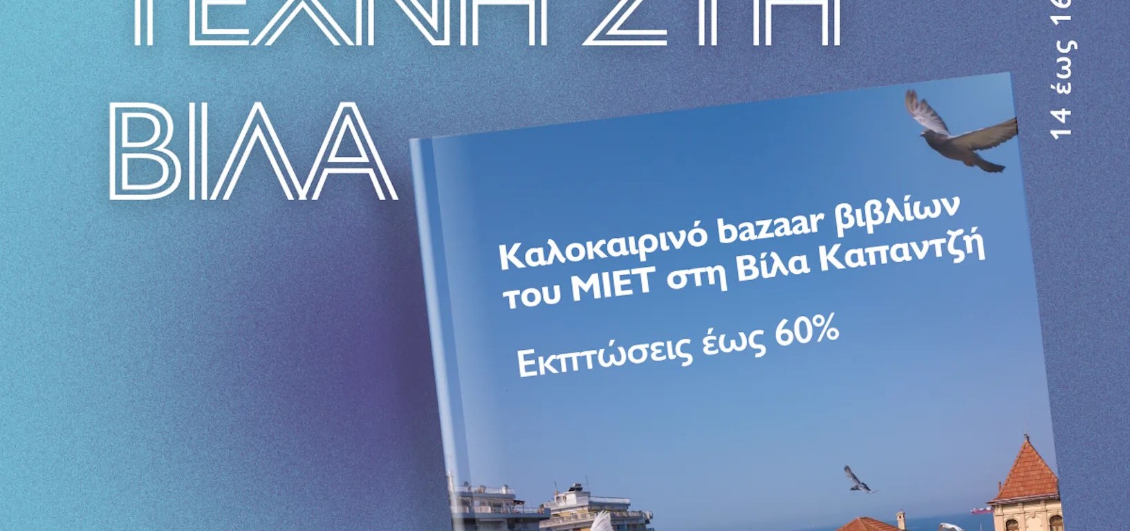 Το καλοκαιρινό bazaar βιβλίων του ΜΙΕΤ στη Θεσσαλονίκη επιστρέφει στη Βίλα Καπαντζή (Βασιλίσσης Όλγας 108), από την Παρασκευή 14 έως έως και την Κυριακή 16 Ιουνίου 2024.
