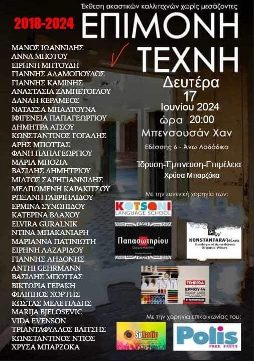 Με την προοπτική να εισακουστεί το μήνυμα και να βρεθεί λύση για το ιστορικό κτήριο, ενώνουμε τις δυνάμεις μας 17 Ιουνίου στον χώρο μπροστά από το Bensousan Han, γιορτάζοντας την επέτειο του ξεκινήματος της ΕΠΙΜΟΝΗΣ ΤΕΧΝΗΣ τον Ιούνιο του 2018 αλλά και την επιτυχημένη πορεία του κτηρίου στον χρόνο, αποβλέποντας στην ευαισθητοποίηση θεσμών, φορέων, ιδρυμάτων και πιθανών επενδυτών, με στόχο τη διάσωση και την επανάχρηση του μνημείου.