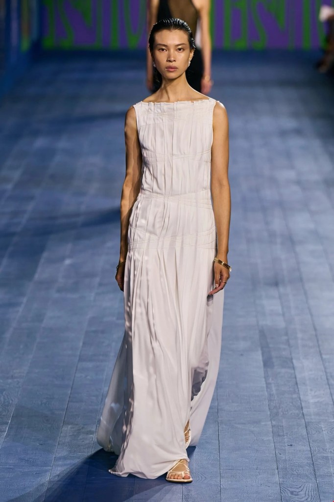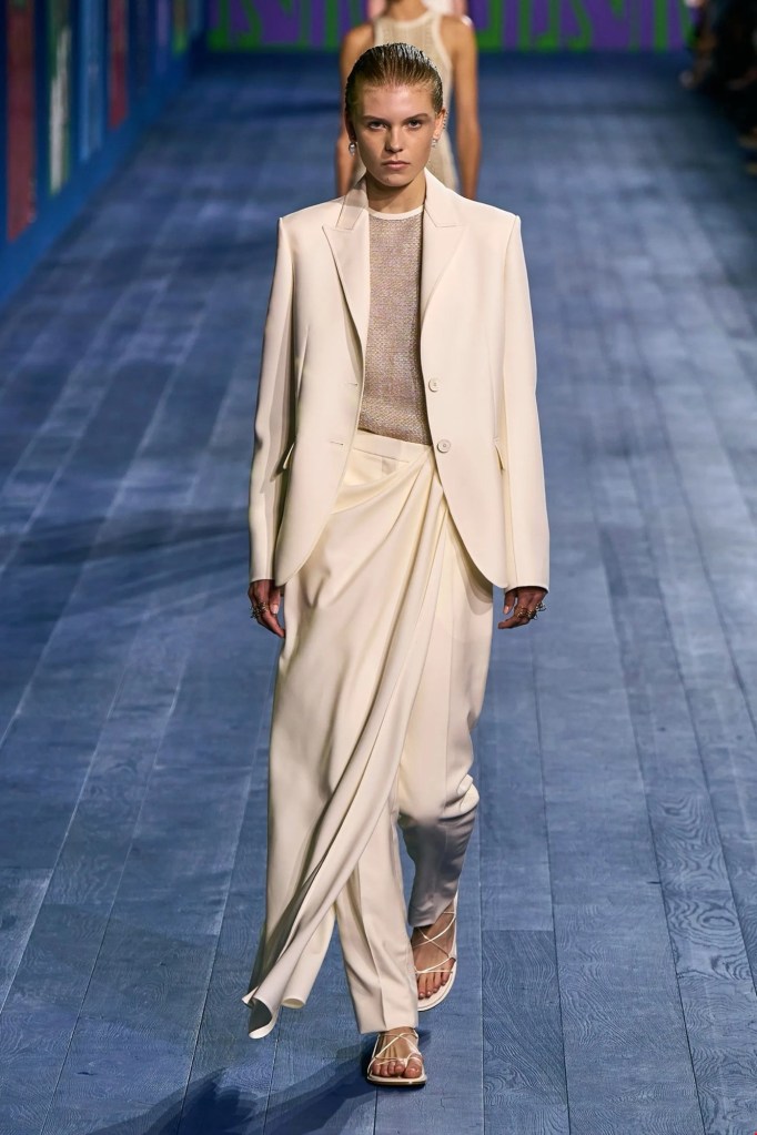 Η συγκεκριμένη συλλογή θύμισε έντονα την Cruise 2022 που είχε παρουσιάσει ο οίκος Dior στην Αθήνα, και πιο συγκεκριμένα στο Καλλιμάρμαρο. Τότε, η Maria Grazia Chiuri είχε θέσει ως στόχο να αναδείξει μέσα από τις δημιουργίες της τις ποικίλες και διαφορετικές απεικονίσεις της θηλυκότητας και τους διαφορετικούς ρόλους που έχει μία γυναίκα της σύγχρονης κοινωνίας. Και τα είχε καταφέρει με μεγάλη επιτυχία, χρησιμοποιώντας τον αρχαιοελληνικό πέπλο, που σύμφωνα με την παράδοση είναι το ένδυμα των θεών. Τότε και σήμερα, η δημιουργός φαίνεται πως χρησιμοποίησε τον πέπλο για τους ίδιους λόγους. Επειδή επιτρέπει στο σώμα να κινείται με άνεση και αιθέρια χάρη, χωρίς καμία δυσκολία, χωρίς κανέναν περιορισμό. Είναι το απόλυτο σύμβολο ελευθερίας και θηλυκότητας.