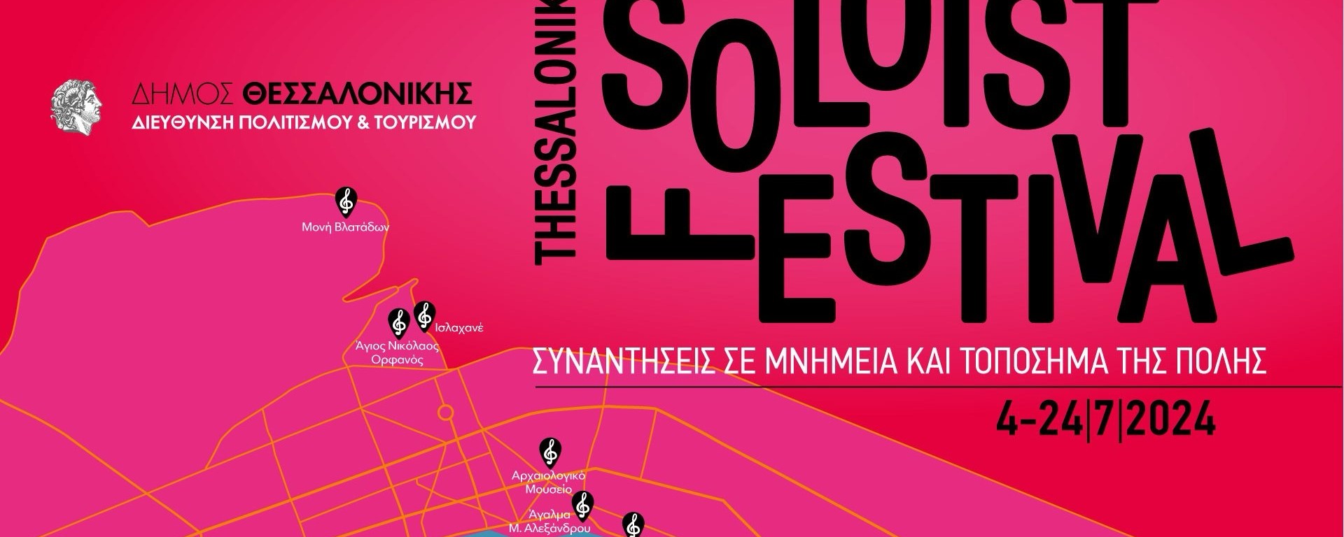 O Δήμος Θεσσαλονίκης διοργανώνει για πρώτη φορά, από τις 4 έως τις 24 Ιουλίου 2024, το «Thessaloniki Soloist Festival, συναντήσεις σε μνημεία και τοπόσημα της πόλης». Με συναυλίες που περιέχουν κλασική, jazz, funky, ethnic, παραδοσιακή μουσική, ρεμπέτικο, έντεχνο, μουσική του κόσμου, με σύγχρονο χορό και με μια εκρηκτική βραδιά brake dance – το νέο άθλημα που κάνει το ντεμπούτο του στους Ολυμπιακούς Αγώνες του Παρισιού 2024, το Soloist Festival προσφέρει μια πολυδιάστατη εμπειρία αισθήσεων, σε επαφή με την πόλη, για κάθε ηλικία και διάθεση. Παράλληλα, μέσα από τους μοναδικούς χώρους διεξαγωγής τους, το φεστιβάλ αποτελεί ένα ταξίδι στην ιστορία και τον σύγχρονο πολιτισμό της πόλης.