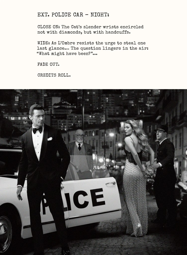 Το στορι φωτογραφημένο από τον Felix Kunze, θέλει τους σούπερ σταρ να υποδύονται ένα κινηματογραφικό ερωτευμένο ζευγάρι με την ηθοποιό να είναι στον ρόλο της κλέφτρας που ξαφρίζει πλούσιους σε ένα πλούσιο θέρετρο. Ο τίτλος του project είναι The Heist of the Heart, η Blake είναι η The cat και ο Jackman ο L’ ombre.