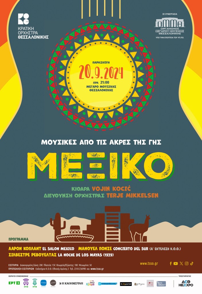 Η Κρατική Ορχήστρα Θεσσαλονίκης συνεχίζει τον αγαπημένο κύκλο‘Μουσικές από τις άκρες της Γης’ με μία επίσκεψη στο Μεξικό. Ο πολύπλευρος Σέρβος κιθαρίστας Vojin Kocić «αιχμαλωτίζει το κοινό με την πηγαία του μουσικότητα, το εκφραστικό του παίξιμο και τις τολμηρές του ερμηνείες». Ερμηνεύει το φινετσάτο ‘Concierto del Sur’ σε μία εκτέλεση αφιερωμένη στη μνήμη του Ιταλού κιθαρίστα Oscar Ghiglia, που υπήρξε μία από τις σημαντικότερες προσωπικότητες παγκοσμίως στο χώρο της κλασικής κιθάρας, ενώ ζούσε και δραστηριοποιούνταν για χρόνια στη Θεσσαλονίκη και ήταν μάλιστα ένας πιστός ακόλουθος της Κ.Ο.Θ..