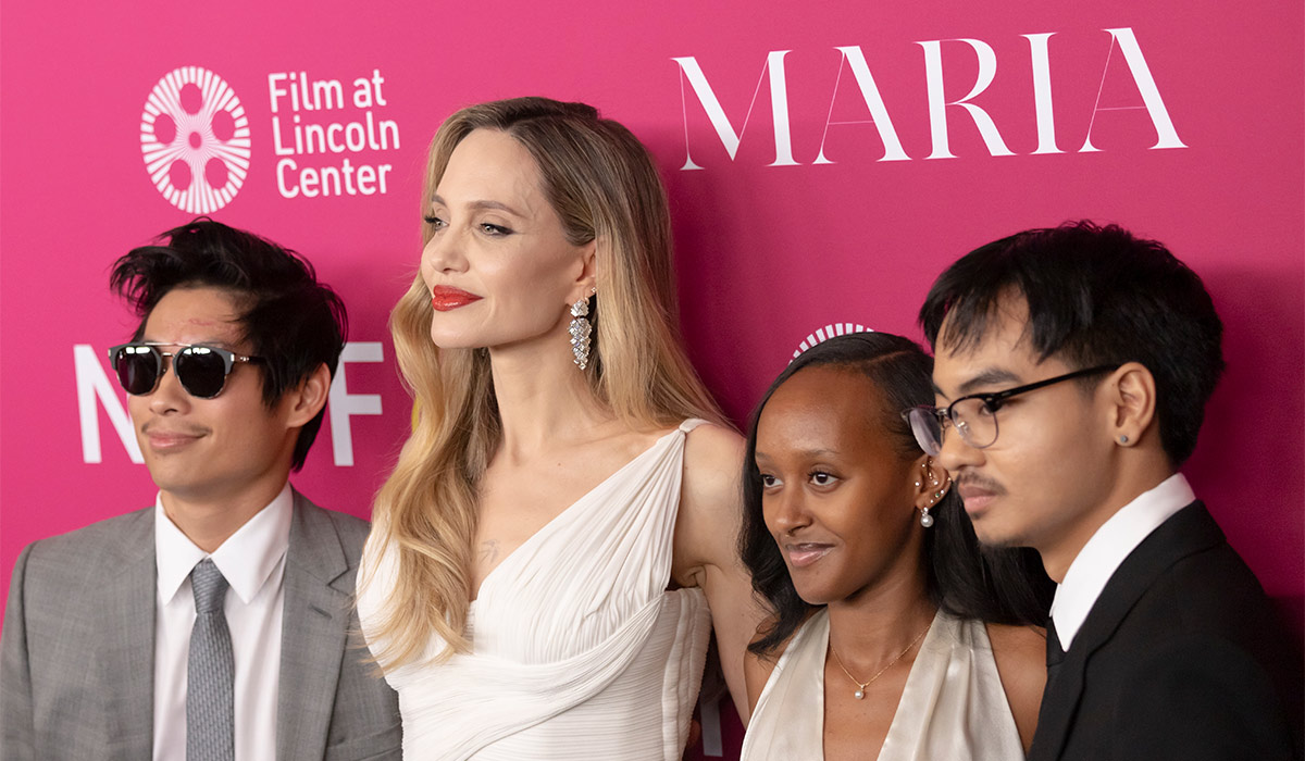 Η Angelina Jolie εμφανίστηκε με Madame Grès αρχαιοελληνικό εντυπωσιακό φόρεμα μαζί με τα τρία από τα έξι παιδιά της στο Φεστιβάλ Κινηματογράφου της Νέας Υόρκης για την πρεμιέρα της ταινίας Maria, την Κυριακή 29 Σεπτεμβρίου στο Alice Tully Hall του Lincoln Center. Η σταρ περπάτησε στο κόκκινο χαλί με τον Pax, 20 ετών, την Zahara, 19 ετών και τον Maddox, 23 ετών.