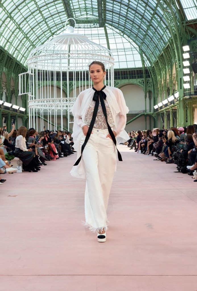 Ένα τεράστιο παραδοσιακό λευκό κλουβί με τα αρχικά CC του οίκου τριγύρω του χαραγμένα, βρίσκονταν στο κέντρο της πασαρέλας υπενθυμίζοντας την διαφημιστική καμπάνια που είχε κάνει για τον οίκο, το 1991 η Vanessa Paradis με τον σκηνοθέτη Jean-Paul Goude. Τα μοντέλα διέσχιζαν το εν λόγω κλουβί και στη συνέχεια εισέρχονταν στην κύρια αίθουσα.