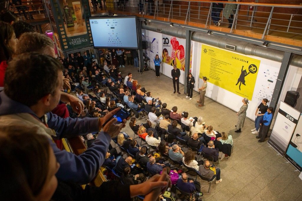 Αμέσως μετά, η Ελίζ Ζαλαντό κάλεσε στη σκηνή τη Βικτόρια Χίσλοπ, πρέσβειρα της φετινής Αγοράς, η οποία απευθύνθηκε στο κοινό. «Σας ευχαριστώ για την τιμή να είμαι η ambassador της Αγοράς. Σχεδόν όλοι χάσαμε τη φωνή μας με όλες αυτές τις συζητήσεις και τις πολιτιστικές ανταλλαγές αυτών των ημερών, που υπήρξαν το σήμα κατατεθέν αυτής της καταπληκτικής εβδομάδας. Φοράω ακόμα τη διαπίστευσή μου, μιας και θα αισθανόμουν χαμένη και “γυμνή” χωρίς αυτό το υπέροχο σήμα. Ήμουν παρούσα στις παρουσιάσεις τόσο του Crossroads Co-Production Forum όσο και του AGORA Works in Progress, βλέποντας εικόνες και πρότζεκτ που με εντυπωσίασαν. Δεν θα ήθελα με τίποτα να πάρω μέρος σε κάποια κριτική επιτροπή γιατί όλα τα πρότζεκτ με συγκίνησαν και με άγγιξαν βαθιά. Κάποια με έκαναν να γελάσω, κάποια άλλα ήταν σοκαριστικά, όλα τους όμως, ανεξάρτητα από το αν βρίσκονται σε προχωρημένο ή πρώιμο στάδιο, είναι ιστορίες που αξίζει να ειπωθούν. Το πιο σημαντικό στοιχείο, αυτό που γέμισε την καρδιά μου με χαρά, ήταν να δω όλες αυτές τις συνεργασίες που ξεπερνούν τα σύνορα, να νιώσω ότι μπορούμε όλοι μαζί να δημιουργήσουμε τέχνη. Κι όπως ειπώθηκε και προηγουμένως, αυτό είναι πιο σημαντικό από ποτέ. Ελπίζω να προσκληθώ ξανά στη Θεσσαλονίκη και να παρακολουθήσω αυτές τις ταινίες στη μεγάλη οθόνη. Από την πρώτη στιγμή που βρέθηκα εδώ, δεν ήθελα να εύχομαι “καλή τύχη”. Η τύχη είναι απλώς ένα μικρό κομμάτι στην περίπλοκη διαδικασία της δημιουργίας μιας ταινίας. Να συναντήσεις τους σωστούς ανθρώπους, να συγκεντρώσεις τα χρήματα, να συνθέσεις τη σωστή ομάδα. Η σωστή όμως ευχή, και μάλλον η Ελίζ τη χρησιμοποιεί πιο συχνά από μένα, είναι το γαλλικό “bon courage”, να έχετε κουράγιο και δύναμη. Μην περιμένετε να βρεθεί στον δρόμο σας κάποιο τυχερό αστέρι, αρπάξτε το και αναγκάστε το να δουλέψει για λογαριασμό σας. Δεν θα ήθελα με τίποτα να είμαι μέλος σε κάποια κριτική επιτροπή φέτος, καθώς όλες οι ταινίες ήταν εξαιρετικές. Αν ήταν δική μου η επιλογή, θα έδινα σε όλους βραβείο. Για να είμαι ειλικρινής, εγώ δεν κέρδισα ποτέ κάποιο σημαντικό βραβείο ως συγγραφέας, αυτό όμως δεν με απέτρεψε από το να γράφω βιβλία. Εύχομαι ένα υπέροχο βράδυ σε όλες και όλους», κατέληξε η Βικτόρια Χίσλοπ.