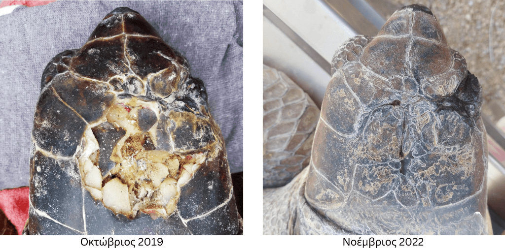Ο ‘Ζώης’ έφτασε στο Κέντρο Διάσωσης Θαλασσίων Χελωνών του ΑΡΧΕΛΩΝ το 2019 με σοβαρό εσκεμμένο τραύμα στο κεφάλι. Μετά από 3 χρόνια εντατικής φροντίδας από τους εθελοντές και την ομάδα περίθαλψης επέστρεψε αποθεραπευμένος στα νερά της Μεσογείου.