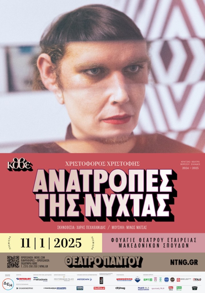 Με μεγάλη επιτυχία δόθηκε από το ΚΘΒΕ η πρεμιέρα της πρώτης νέας παραγωγής του 2025, «Ανατροπές της νύχτας», του βραβευμένου λογοτέχνη και σκηνοθέτη, Χριστόφορου Χριστοφή, σε σκηνοθεσία Χάρη Πεχλιβανίδη, το Σάββατο 11 Ιανουαρίου 2025, στο κατάμεστο Φουαγιέ του θεάτρου της Εταιρείας Μακεδονικών Σπουδών. Οι θεατές όρθιοι παρακολούθησαν την πρωτότυπη performance και έζησαν τη βιωματική εμπειρία μιας περιπλάνησης στον χρόνο, μέσα από ένα ταξίδι σε διαφορετικούς τόπους «διαφορετικές νύχτες και ξημερώματα».