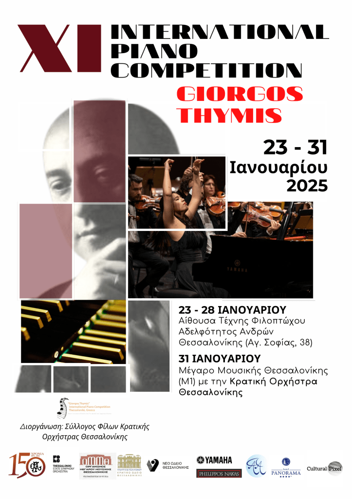 72 νέοι πιανίστες από όλα τα μήκη και πλάτη του πλανήτη και 7 παγκοσμίως καταξιωμένοι κριτές συμμετέχουν στον 11ο Διεθνή Διαγωνισμό Πιάνου «ΓΙΩΡΓΟΣ ΘΥΜΗΣ» (11th International Piano Competition «Giorgos Thymis»), που θα πραγματοποιηθεί στη Θεσσαλονίκη από τις 23 έως τις 31 Ιανουαρίου 2025.