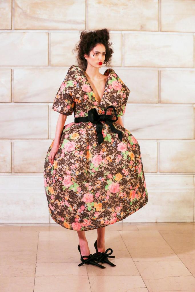 Η επίδειξη ολοκληρώθηκε με μια σειρά από φορέματα που έφεραν υπερβολικούς ώμους και avant-garde γεωμετρίες. Το show έκλεισε η Alex Consani, η οποία περπάτησε φορώντας ένα φουσκωτό κόκκινο φόρεμα. Μια στην κυριολεξία υπερβολική συλλογή που απευθύνεται σε celebrities και σε λουκ για το κόκκινο χαλί.