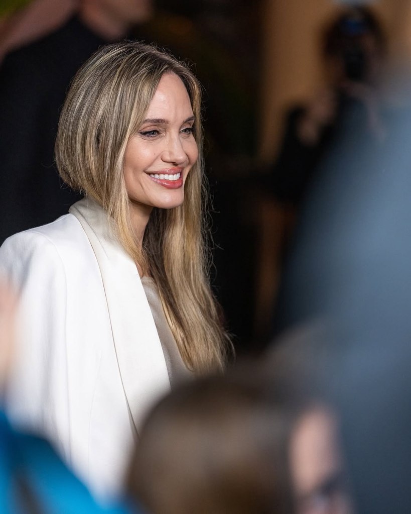 Η 49χρονη ηθοποιός χαιρέτησε θερμά τους θαυμαστές της, οι οποίοι της χάρισαν ένα μπουκέτο με κόκκινα και λευκά λουλούδια, πριν περπατήσει στο κόκκινο χαλί του Φεστιβάλ, φορώντας ένα εντυπωσιακό λευκό σατέν φόρεμα με χαμηλή πλάτη, συνδυασμένο με ένα κομψό σακάκι. Είχε τα μακριά ίσια μαλλιά της χαλαρά κάτω, ενώ συνδύασε το look με κόκκινο κραγιόν. Η Jolie μοιράστηκε με το κοινό την ευγνωμοσύνη της για τη μητέρα της, χαρακτηρίζοντάς την ως «την πιο ευγενική και γενναιόδωρη γυναίκα» που της δίδαξε την αξία της καλοσύνης και της συμπόνιας. «Ό,τι καλό έχω μέσα μου, προέρχεται από εκείνη», είπε με τρεμάμενη φωνή, προκαλώντας συγκίνηση στην αίθουσα.