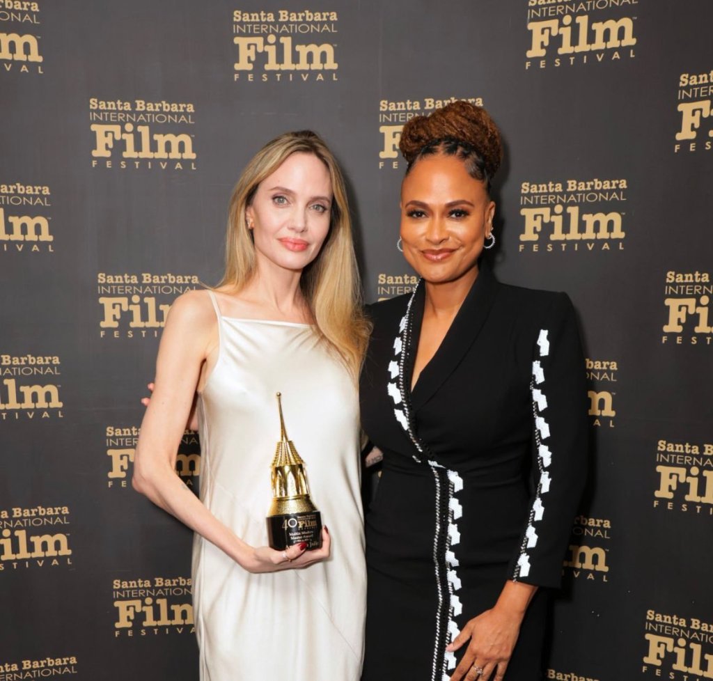 Στα λευκά ντύθηκε η Αντζελίνα Τζολί για να παραλάβει το Modern Master Award,την υψηλότερη τιμή του Διεθνούς Φεστιβάλ Κινηματογράφου της Σάντα Μπάρμπαρα, στο θέατρο Arlington.