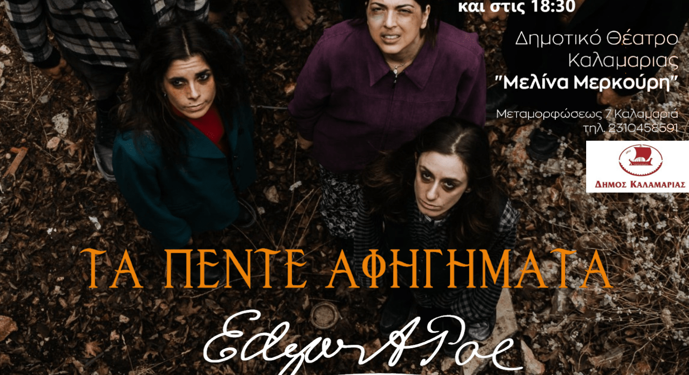 Το Κέντρο Πολιτισμού Περιφέρειας Κεντρικής Μακεδονίας παρουσιάζει την θεατρική παράσταση «Τα πέντε αφηγήματα του Edgar Allan Poe» το Σάββατο 1 Μαρτίου στις 18:30 & 21:15 στο Δημοτικό Θέατρο Καλαμαριάς «Μελίνα Μερκούρη»