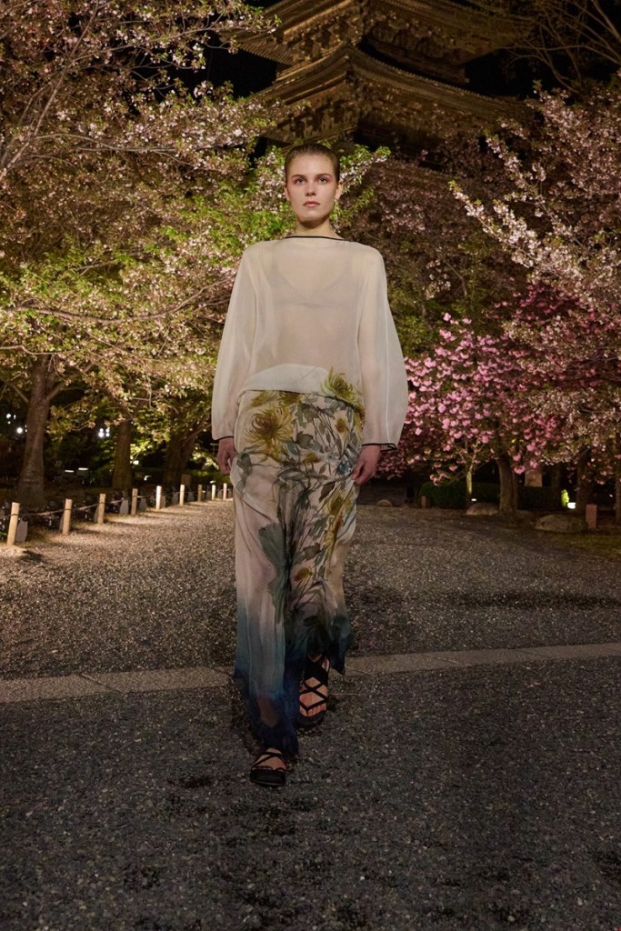 Στο Κιότο παρουσίασε τη νέα συλλογή της σεζόν Pre-Fall 2025 του οίκου Dior, η Maria Grazia Chiuri, καλλιτεχνική διευθύντρια του οίκου, και ήταν σαν ιαπωνικό παραμύθι. Οι ανθισμένες κερασιές στον κήπο του ιστορικού ναού Toji, όπου και πραγματοποιήθηκε το show, δημιούργησαν έναν μοναδικό φόντο για τις δημιουργίες της Maria Grazia. Όπως δήλωσε η ίδια, προσπάθησε να εξερευνήσει και να αναλογιστεί την ομορφιά του κιμονό, αλλά και την ενδιαφέρουσα φιλοσοφία που κρύβεται πίσω από τη μορφή του. Το στοιχείο που υπήρξε μοναδικά γοητευτικό για τη σχεδιάστρια ήταν ο διάλογος που εκτυλίσσεται ανάμεσα στο ένδυμα και το σώμα. Συγκεκριμένα, το σώμα καθορίζει το σχήμα του κιμονό και εκείνο αγκαλιάζει τις γραμμές της σιλουέτας, χωρίς να τις περιορίζει, χωρίς να προσπαθεί να τις χωρέσει σε καλούπια. Αντιθέτως, στον κόσμο της δυτικής μόδας, το ρούχο είναι εκείνο που ορίζει το σχήμα και το σώμα καλείται να «χωρέσει”, να προσαρμοστεί.