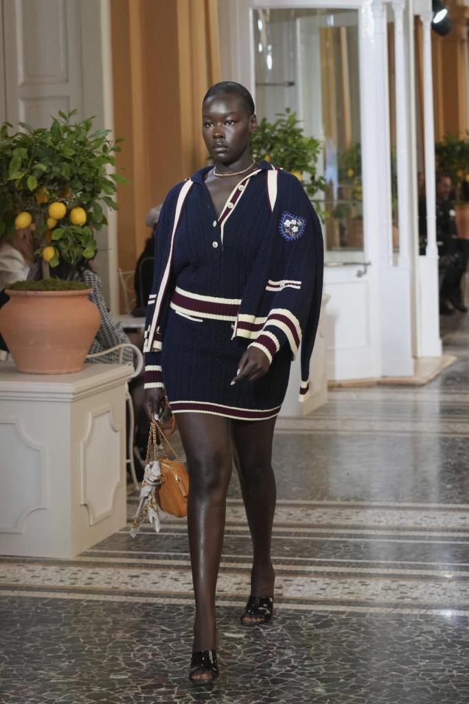 Στη συλλογή είδαμε μεταξύ άλλων ένα κομψό κοραλί σακάκι με κοντή φούστα και χρυσά κουμπιά, αλλά και πιο casual επιλογές όπως ριγέ τοπ με παντελόνι και ένα ακόμη με μαύρες λεπτομέρειες σε κρεμ μπλούζα και καμπάνα. Αλλά και λευκά δαντελωτά φορέματα και σακάκια. Πλεκτά κοστούμια και ελαφριά σακάκια συνδυάζονται με σορτς ή φούστες, ενώ τα πιο χοντρά πλεκτά φοριούνται με ριγέ φούστες. Όλα μοιάζουν σχεδιασμένα για να κερδίσουν το κοινό που αγαπά τη μόδα. Αντίστοιχα, οι μικρές τσάντες με χάντρες εντυπωσιάζουν. Επίσης ένα πλισέ παντελόνι και πουκάμισο που θα μπορούσαν άνετα να ανήκουν στη γκαρνταρόμπα της Chanel από τη δεκαετία του 1930 αποδεικνύοντας πως κάποιες μόδες απλά δεν παλιώνουν ποτέ.
