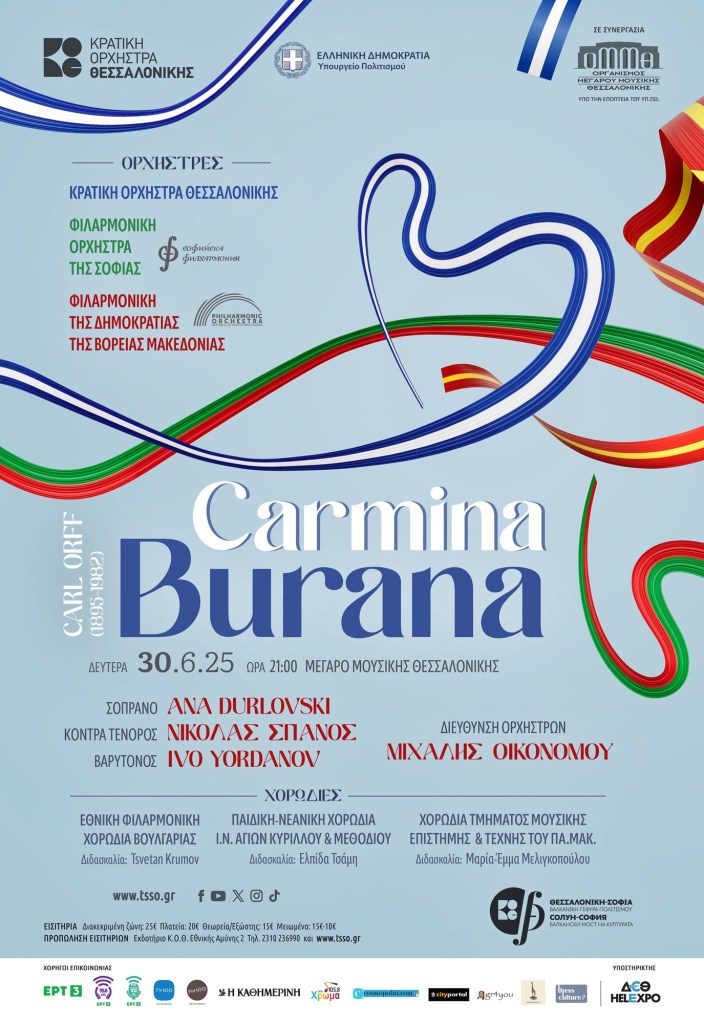 Η Κρατική Ορχήστρα Θεσσαλονίκης εμφανίστηκε τον Φεβρουάριο του 2025 στο κατάμεστο National Palace of Culture της Σόφιας σε μία ιστορική συναυλία, όπου ενώθηκε επί σκηνής με τη Φιλαρμονική Ορχήστρα της Σόφιας, τη Φιλαρμονική της Δημοκρατίας της Βόρειας Μακεδονίας και την Εθνική Φιλαρμονική Χορωδία της Βουλγαρίας, στο εμβληματικό έργο του Καρλ Ορφ ‘Carmina Burana’. Τις ορχήστρες διηύθυνε ο Καλλιτεχνικός Διευθυντής της Φιλαρμονικής Σόφιας Nayden Todorov, ενώ συμμετείχαν σπουδαίοι λυρικοί τραγουδιστές από τις τρεις χώρες, όπως η σοπράνο Ana Durlovski (Βόρεια Μακεδονία), ο κόντρα τενόρος Νικόλας Σπανός (Ελλάδα) και ο βαρύτονος Ivo Yordanov (Βουλγαρία).