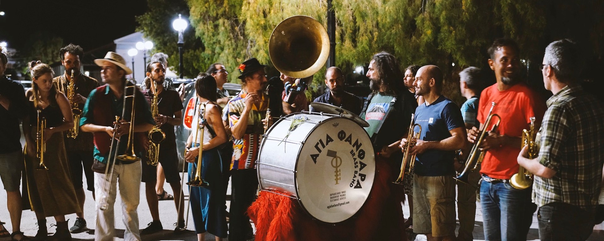 Η ημέρα θα ολοκληρωθεί με την καταξιωμένη ερμηνεύτρια Ελένη Αράπογλου, η οποία θα παρουσιάσει στο Κύμα διασκευές σε γνωστά ελληνικά τραγούδια για το καλοκαίρι, ενώ θα ακολουθήσει πατινάδα από την κορυφαία μπάντα κρουστών και πνευστών Αγία Φανφάρα, σε ένα μοναδικό street party στους δρόμους της Αιδηψού, πριν την προβολή της ταινίας Υπάρχω. Το συγκρότημα θα ερμηνεύσει αγαπημένες παραδοσιακές αλλά και σύγχρονες μελωδίες από την Ελλάδα, τα Βαλκάνια και την ευρύτερη Ανατολική Μεσόγειο.