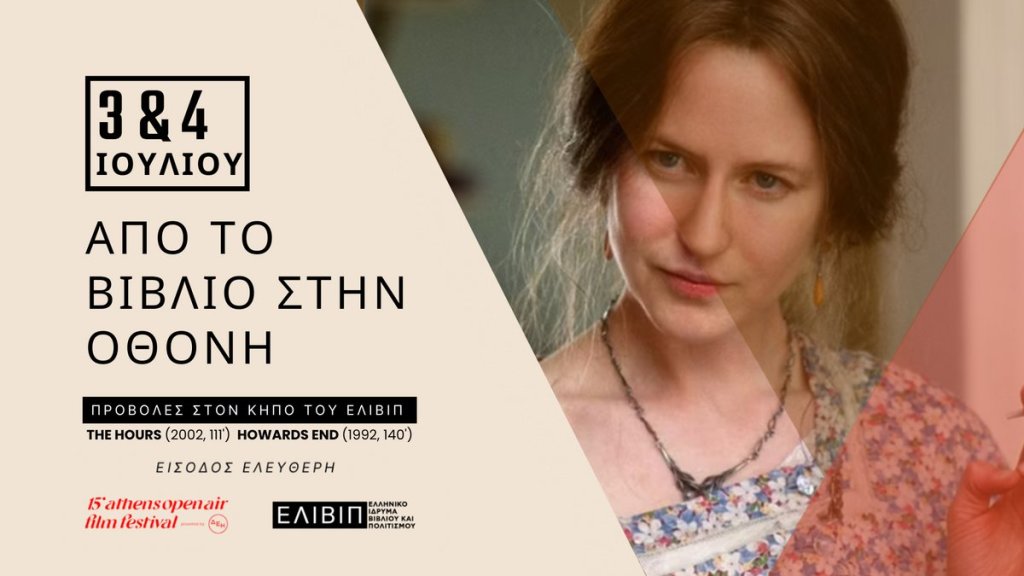 Το ΕΛΙΒΙΠ και το Athens Open Air Film Festival, στην πρώτη συνεργασία τους, παρουσιάζουν στον κήπο του Ελληνικού Ιδρύματος Βιβλίου και Πολιτισμού (ΕΛΙΒΙΠ), στο Παλαιό Ψυχικό, δύο ταινίες που βασίζονται σε βιβλία. Είναι «Οι Ώρες» και η «Επιστροφή στο Χάουαρντς Εντ». Τις ταινίες προλογίζουν ο Θανάσης Χατζόπουλος, ποιητής και ψυχαναλυτής και η Κατερίνα Σχινά, μεταφράστρια και κριτικός λογοτεχνίας.