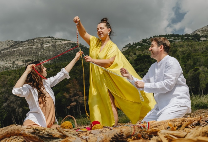 Μάτα Κατσούλη (Άχρονη υφάντρα), Νίκος Σπανάτης (Άνδρας), Δανάη Γιαννακάκου (Χορεύτρια)