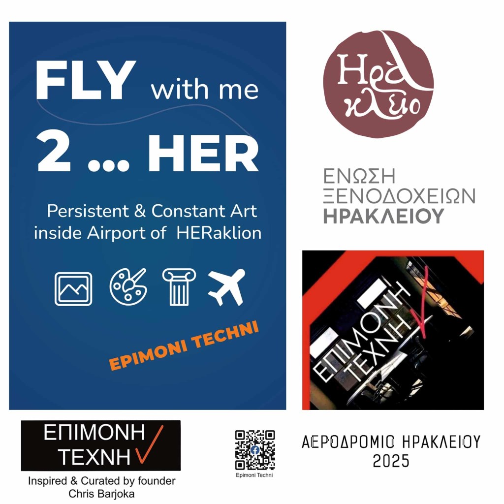 Η εικαστική πλατφόρμα «Επίμονη Τέχνη» ανακοινώνει με ιδιαίτερη χαρά τη συνεργασία με το Αεροδρόμιο Ηρακλείου, στο πλαίσιο της οποίας ο χώρος υποδοχής του αεροδρομίου θα «ντυθεί» με εκτυπωμένα έργα εξαιρετικών σύγχρονων καλλιτεχνών. Η πρωτοβουλία αυτή φιλοδοξεί να προσφέρει μια νέα αισθητική εμπειρία στους ταξιδιώτες, προβάλλοντας δημιουργούς και έργα που εμπνέουν και αναδεικνύουν το σύγχρονο ελληνικό πολιτιστικό γίγνεσθαι.