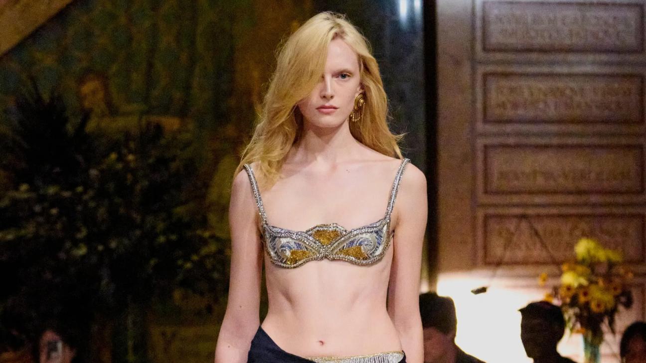 Η επίδειξη πραγματοποιήθηκε χθες το βράδυ στη Milan Fashion Week και η ίδια η παράσταση αποτέλεσε μια απόκλιση από τη λαμπερή, εκθαμβωτική γοητεία που καθόριζε τη θητεία της Donatella Versace και έχει συνδεθεί με το ιταλικό οίκο. Στα παρασκήνια, ο Vitale δήλωσε ότι αναζητούσε κάτι «αληθινό», όπως αναφέρει το Wallpaper. Στην Pinacoteca Ambrosiana, ένα πολυτελές πρώην σπίτι που μετατράπηκε σε γκαλερί φιλοξενώντας έργα των Caravaggio και Da Vinci, η αλλαγή υποδείχθηκε από σημάδια ακαταστασίας: ανάμεσα σε κασόνια με αντίκες και περιέργειες, ένα ακατάστατο κρεβάτι στο κέντρο περιβαλλόταν από άδεια ποτήρια, ένα τασάκι και συσκευασίες με παυσίπονα, με τα περιεχόμενά τους να χύνονται στο πάτωμα.