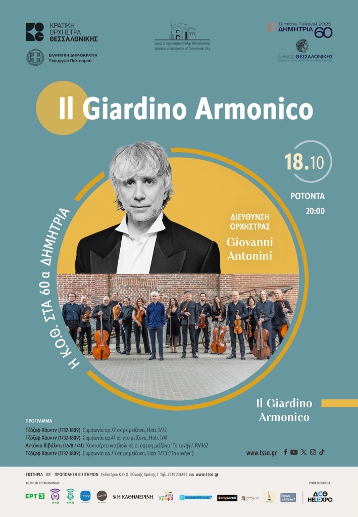 Το μουσικό σχήμα Il Giardino Armonico αναγνωρίζεται διεθνώς ως ένα από τα κορυφαία σύνολα οργάνων εποχής στον κόσμο. Με εξειδίκευση στο ρεπερτόριο του 17ου και 18ου αιώνα έχει να επιδείξει σημαντικές βραβεύσεις και συναυλίες σε όλο τον κόσμο, που γνώρισαν την αποθέωση κοινού και κριτικών. Με την κληρονομιά αριστείας και καινοτομίας που το διακρίνει, το σύνολο Il Giardino Armonico επαναπροσδιορίζει την ερμηνεία της εποχής, προσφέροντας στο κοινό ένα μουσικό ταξίδι από την μπαρόκ στην κλασική μουσική και μάλιστα μέσα στον επιβλητικό χώρο της Ροτόντας, σε μία εμπειρία που αναμένεται μοναδική.