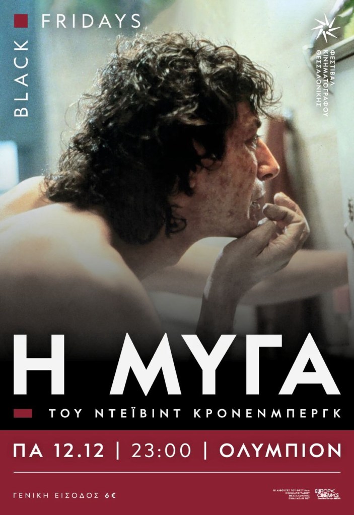 Οι Black Fridays του Φεστιβάλ, που βαδίζουν στα συναρπαστικά μονοπάτια του cult και του horror, αποχαιρετούν τη φετινή χρονιά την Παρασκευή 12 Δεκεμβρίου, στο Ολύμπιον, με την αξέχαστη ταινία τρόμου Η μύγα (The Fly, 1986) του Ντέιβιντ Κρόνενμπεργκ.