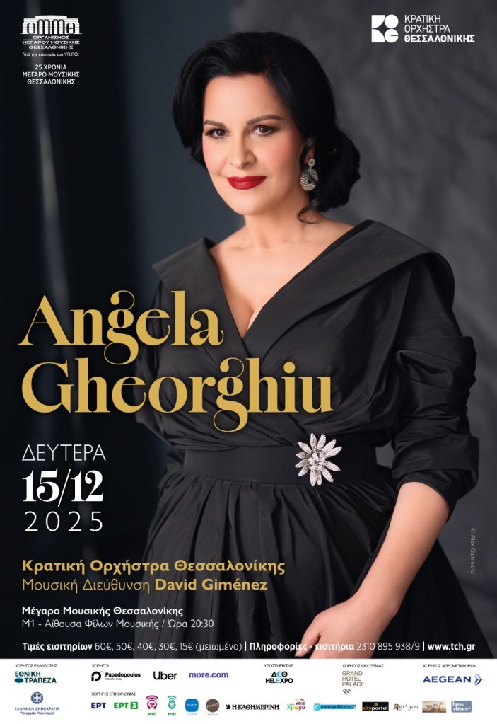 Η Κρατική Ορχήστρα Θεσσαλονίκης και το Μέγαρο Μουσικής Θεσσαλονίκης υποδέχονται την πλέον εντυπωσιακή και χαρισματική τραγουδίστρια των ημερών μας, τη Ρουμάνα ντίβα της όπερας Angela Gheorghiu. Μαζί της ο διάσημος Ισπανός μαέστρος David Giménez, ανιψιός του μυθικού τενόρου José Carreras, με τον οποίο συνεργάστηκε επί σειρά ετών.