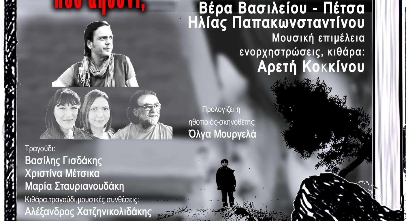 Οι ποιητές, Βέρα Βασιλείου – Πέτσα, Ηλίας Παπακωνσταντίνου και η συνθέτης Αρετή Κοκκίνου, παρουσιάζουν την μουσικοποιητική παράσταση « Πέρα απ’ το φως, πού τόπος, πού αηδόνι;»