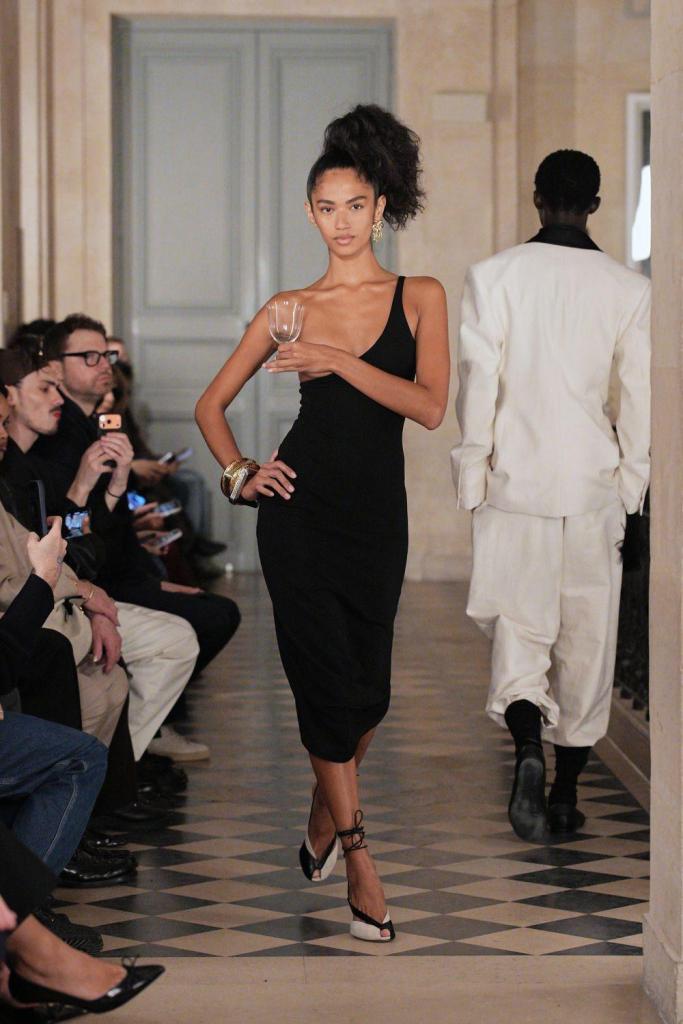 Και τα ανδρικά δεν ήταν απολύτως ισορροπημένα —ένα κοστούμι σε χρώματα τύπου Play-Doh, κανείς;— αλλά έμοιαζαν πιο πρωτότυπα, με ιδιαίτερα παιχνιδιάρικες προσεγγίσεις στο tuxedo dressing. Κατά τη διάρκεια του preview, ο Jacquemus ανέφερε ότι το ανδρικό prêt-à-porter ισοδυναμεί πλέον με το γυναικείο, κυρίως χάρη στην κατηγορία των παντελονιών, αλλά και στα πουκάμισα και τη ραπτική. Εξακολουθεί να βρίσκεται σε φάση επέκτασης, προετοιμάζοντας το άνοιγμα μιας μπουτίκ στο Miami Design District το φθινόπωρο, εδραιώνοντας τις ΗΠΑ ως τη βασική του αγορά. Ήταν το δεύτερο σόου του Jacquemus στο Μουσείο Πικάσο, αν και αυτή τη φορά ο σχεδιαστής το φαντάστηκε ως μια όμορφη έπαυλη για ένα πολυτελές πάρτι, με πολλές γυναίκες ντυμένες με φτερωτές δημιουργίες «στα όρια του κοστουμιού», όπως είπε ο ίδιος.