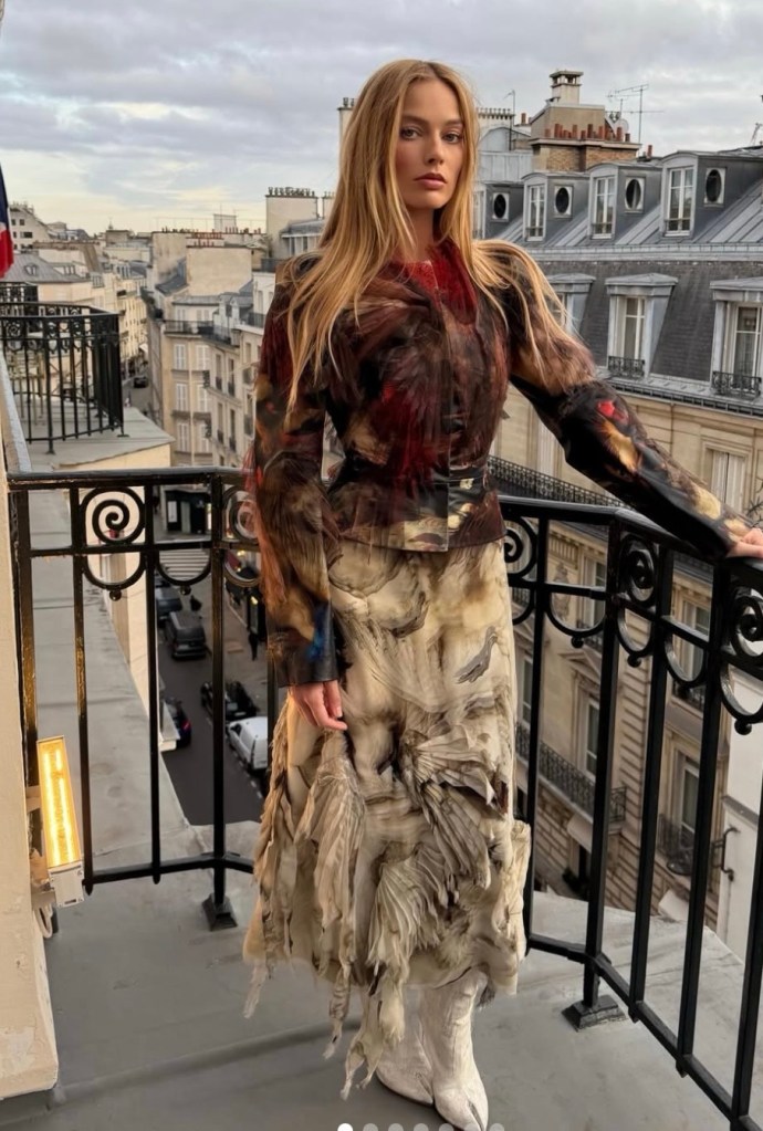 Στις 4 Φεβρουαρίου, η Ρόμπι εμφανίστηκε στο Λονδίνο φορώντας ένα ολοκληρωμένο σύνολο Dilara Fındıkoğlu: ένα στο χέρι βαμμένο, φλοράλ μπούστο σε στρώσεις με κορσέ σύσφιξης στη μέση, μαύρο τζιν χαμηλοκάβαλο με δερμάτινες αγκράφες στη ζώνη και φινίρισμα που θυμίζει πίσσα, καθώς και την τσάντα “Dr. Bag” — ίσως μια αναφορά στη μοίρα του Έρνσο.