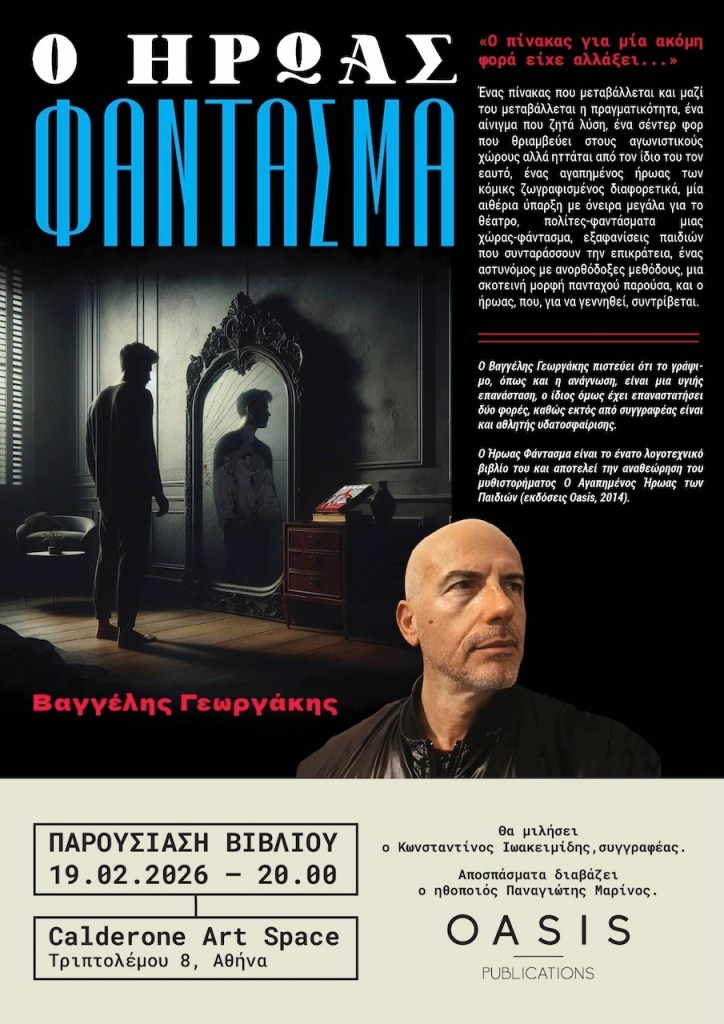 Παρουσίαση του βιβλίου «Ο Ήρωας Φάντασμα» του συγγραφέα και πολίστα Βαγγέλη Γεωργάκη, Πέμπτη 19 Φεβρουαρίου στο Calderone Art Space.
