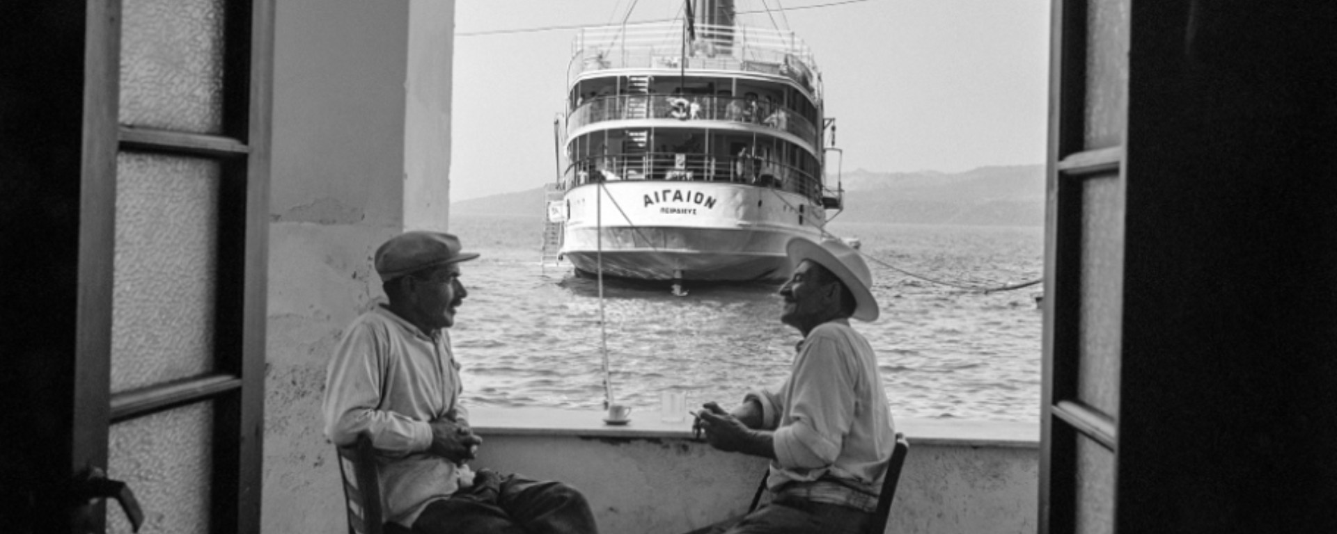Παιδιά που παίζουν σε χωμάτινες αυλές, γυναίκες στο κατώφλι των σπιτιών τους, ψαράδες που επιστρέφουν από το πέλαγος — μικρές στιγμές καθημερινότητας μετατρέπονται σε διαχρονικές εικόνες. Παράλληλα, οι φωτογραφίες αποκαλύπτουν την αθωότητα νησιών όπως η Μύκονος και η Σαντορίνη, πολύ πριν μεταμορφωθούν σε κοσμοπολίτικους προορισμούς.