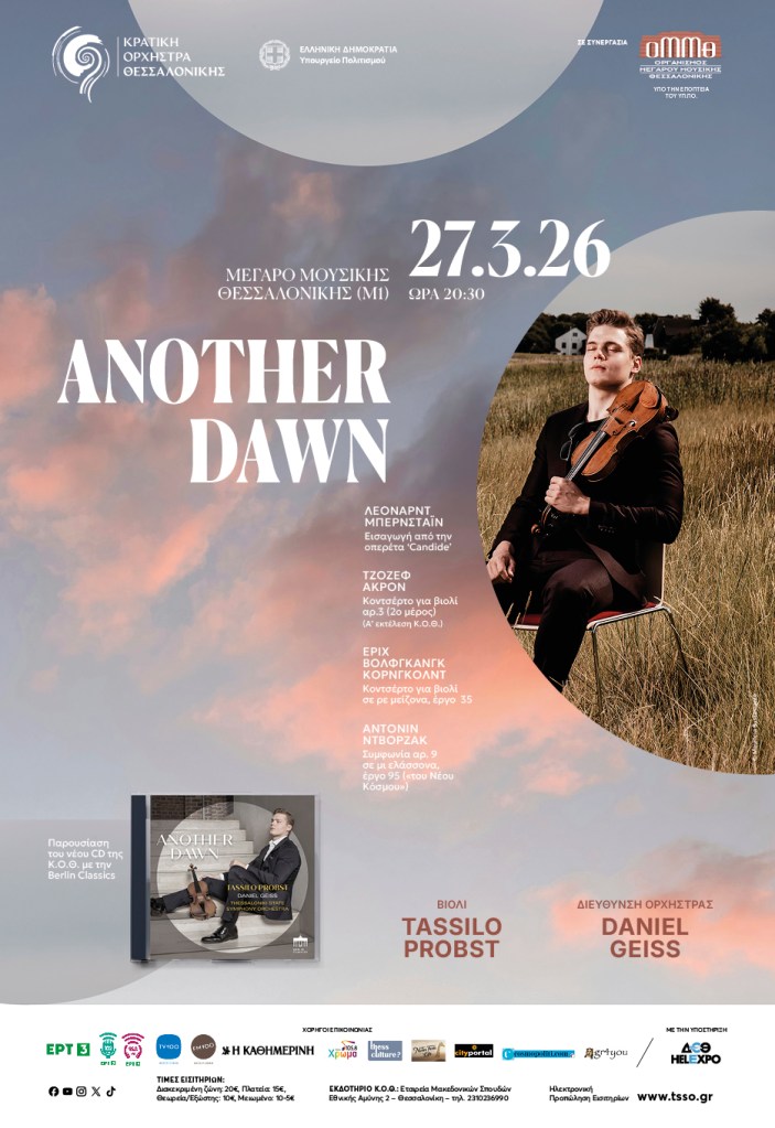 Δωρεάν διπλές προσκλήσεις προσφέρει το notesfromlife, σε συνεργασία με την Κρατική Ορχήστρα Θεσσαλονίκης, για την παρουσίαση του νέου CD της Κ.Ο.Θ., Another Dawn, στο Μέγαρο Μουσικής Παρασκευή, 27 Μαρτίου 2026 και ώρα 20:30 στο Μέγαρο Μουσικής Θεσσαλονίκης στην Αίθουσα Φίλων Μουσικής (Μ1).