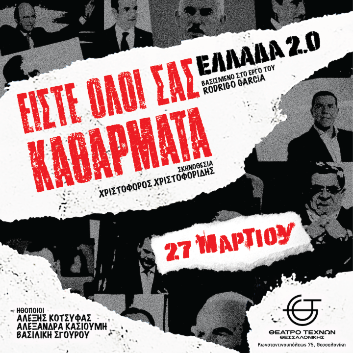 Σε μια εποχή όπου η πραγματικότητα μοιάζει να μας κατακλύζει με εικόνες, γεγονότα και πληροφορίες, το θέατρο καλείται να επαναφέρει κάτι πιο ουσιαστικό: την ανάγκη για σκέψη, θέση και ευθύνη. Η παράσταση «Είστε όλοι σας καθάρματα: Ελλάδα 2.0», βασισμένη στο έργο του Rodrigo García, δεν λειτουργεί απλώς ως καλλιτεχνική πρόταση, αλλά ως μια δυνατή υπενθύμιση ότι όσα συμβαίνουν γύρω μας δεν είναι ποτέ ουδέτερα.