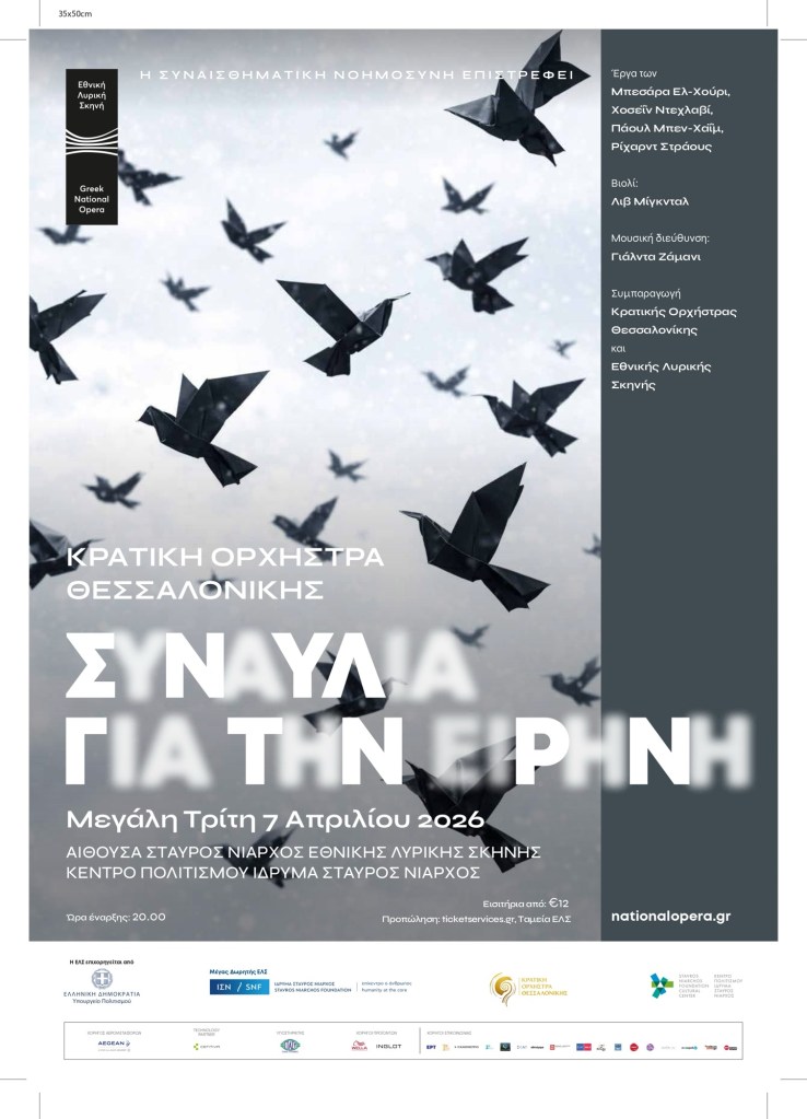 Η Κρατική Ορχήστρα Θεσσαλονίκης παρουσιάζει σε Θεσσαλονίκη και Αθήνα μία συναυλία-προσευχή για την Ειρήνη, με τη μουσική να ενώνει συνθέτες και ερμηνευτές που, δυστυχώς, χωρίζει ο πόλεμος. Η συναυλία στη Θεσσαλονίκη πραγματοποιείται σε συνεργασία με το Μέγαρο Μουσικής Θεσσαλονίκης και στην Αθήνα σε συμπαραγωγή με την Εθνική Λυρική Σκηνή.