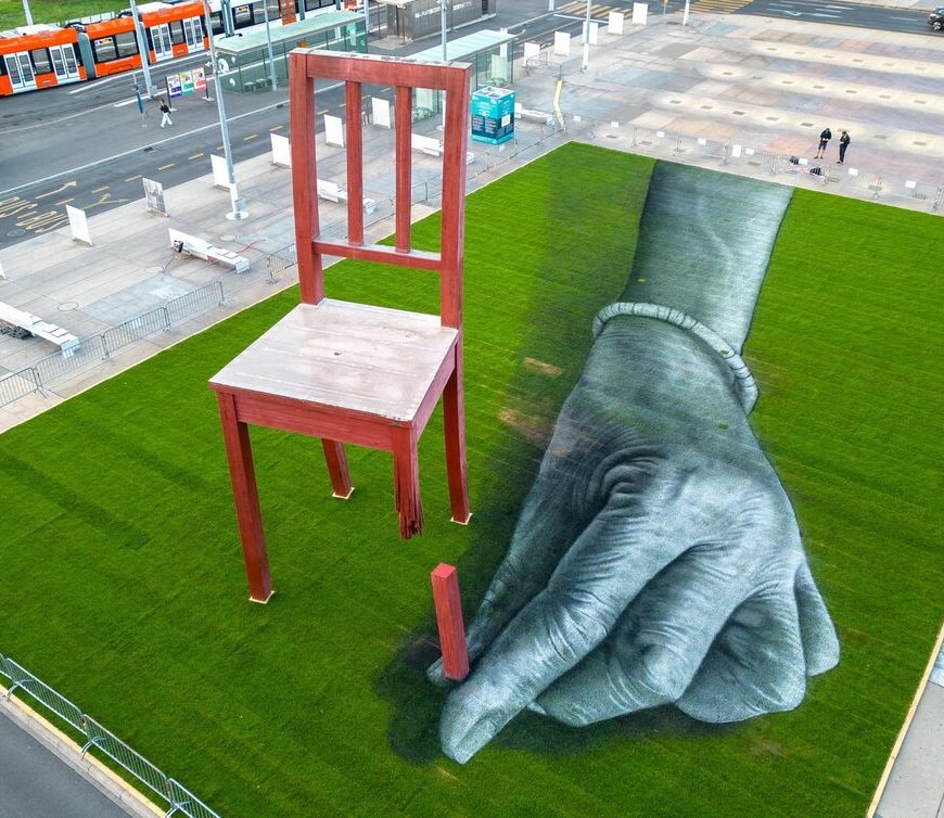 Η μη κυβερνητική οργάνωση Handicap International κάλεσε τον καλλιτέχνη Saype να δημιουργήσει γιγάντια τοιχογραφία γύρω από το γλυπτό Broken Chair… Συνεχίστε την ανάγνωση «All of us»: ένα τεράστιο έργο στην Πλατεία των Εθνών
