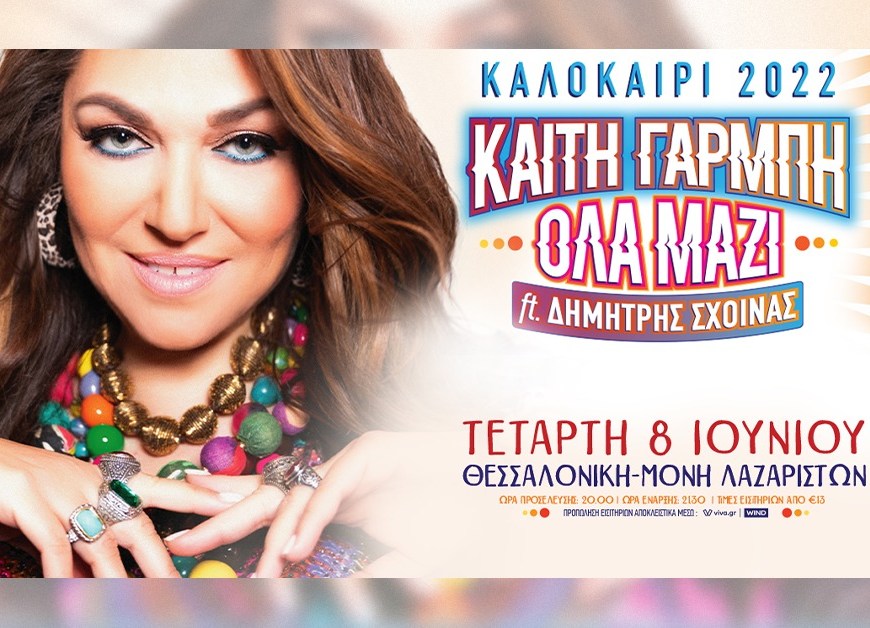 Η «ντίβα της καρδιάς μας», η Καίτη Γαρμπή ετοιμάζει ένα αξέχαστο συναυλιακό καλοκαίρι με εμφανίσεις σε όλη την Ελλάδα! Την Τετάρτη 8 Ιουνίου, η Καίτη έχει γενέθλια και θέλει να τα γιορτάσει με όλους τους αγαπημένους της ανθρώπους στη λατρεμένη Θεσσαλονίκη. Μαζί της θα τραγουδήσουμε ζωντανά στη Μονή Λαζαριστών και θα θυμηθούμε όλες τις μεγάλες διαχρονικές επιτυχίες της και τα no1 hits της από την … Συνεχίστε την ανάγνωση Η Καίτη Γαρμπή έρχεται στη Μονή Λαζαριστών