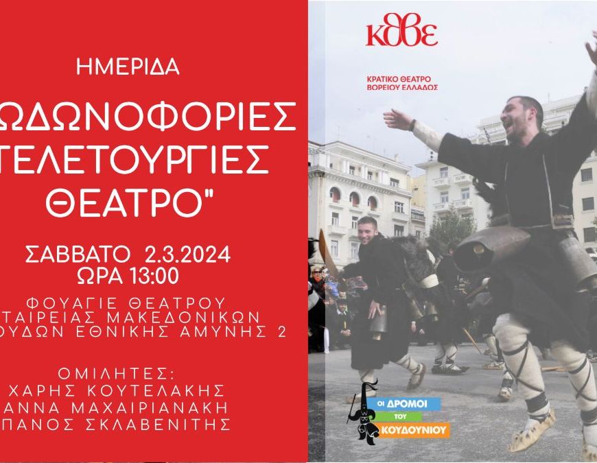 Σάββατο 2 Μαρτίου, 13:00 Συνεχίστε την ανάγνωση ΚΘΒΕ: Ημερίδα: «Κωδωνοφορίες– τελετουργίες -θέατρο» στο Φουαγιέ της ΕΜΣ